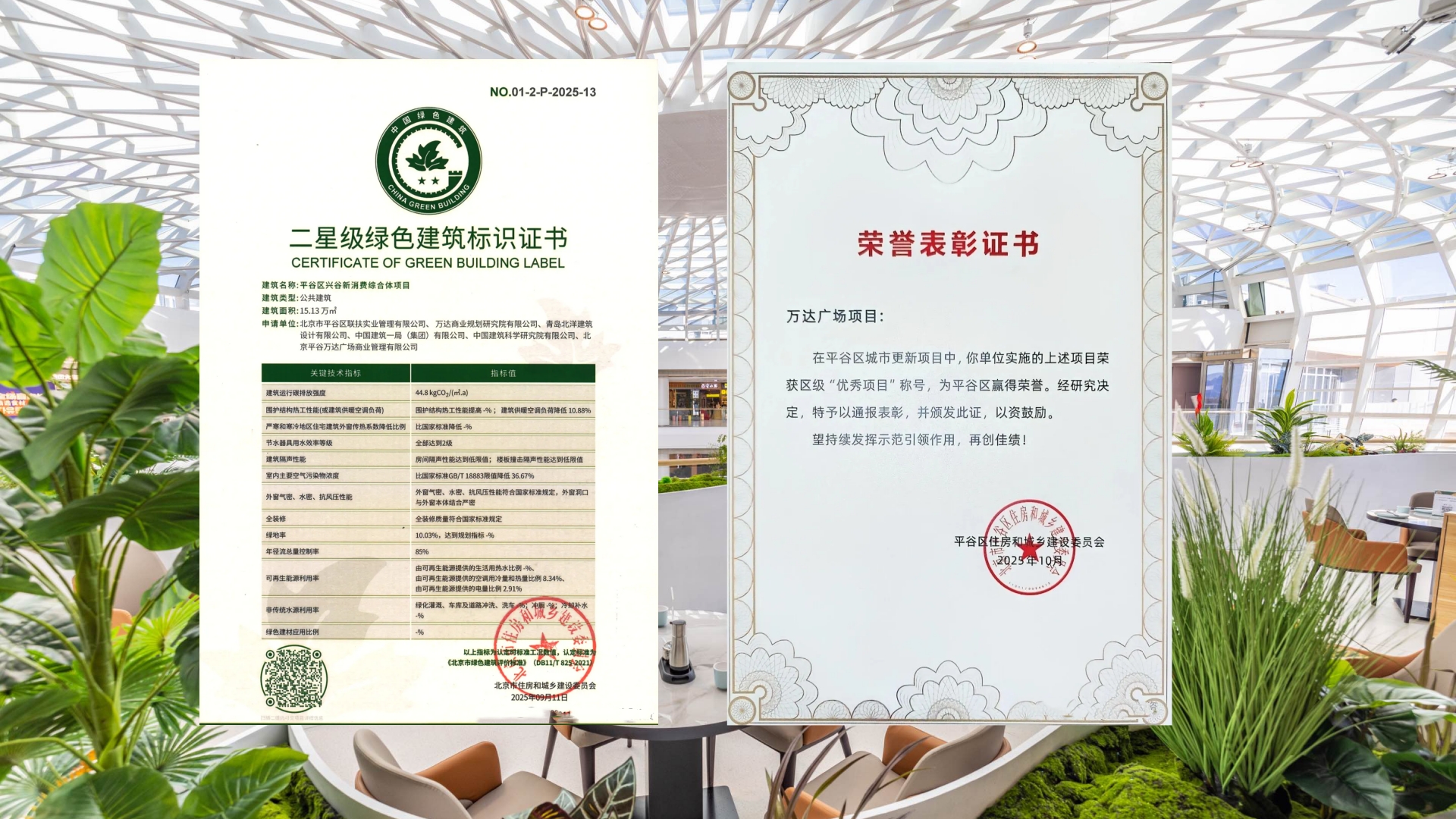 北京平谷萬達(dá)廣場獲綠建認(rèn)證與城市更新雙重榮譽(yù)